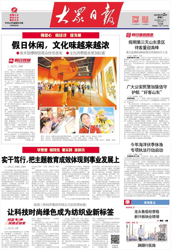 “观展人数、观展热情都达到了近三年的高峰。”山东美术馆新闻宣传中心主任刘小云说。为满足人民群众的假日文化需求,山东美术馆5月1日—3日开放时间延长一小时,让观众有更充裕的时间享受艺术的“盛宴”。