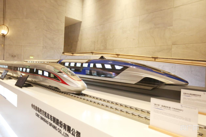 在11件展品中,有来自中车青岛四方机车车辆股份有限公司的“时速600公里高速磁悬浮列车”模型。高铁设计师告诉记者,中车青岛四方机车车辆股份有限公司攻克高速磁浮关键核心技术,实现车辆系统、牵引供电系统、运控通信系统以及线路轨道系统的全自主化。同时,“时速600公里高速磁悬浮列车”能够对高铁和飞机进行速度级的补充,对国家综合立体交通网络的构建也有积极推动作用。