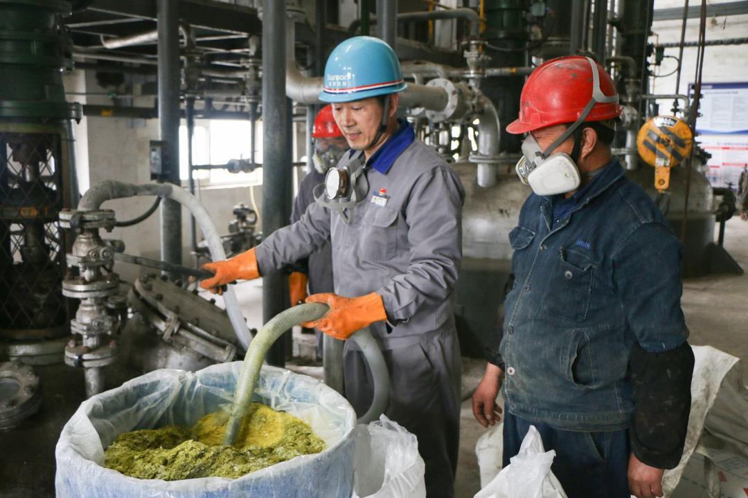 烟台恒邦化工助剂有限公司黑药车间生产班长鲁新州(左一)