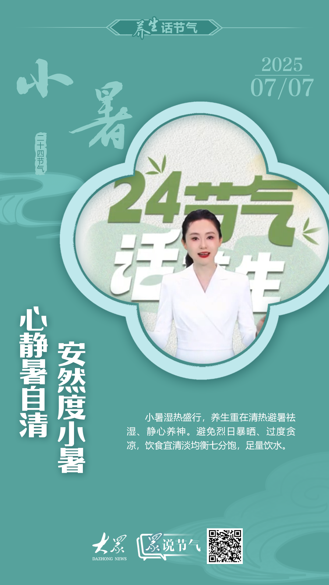 “小暑大暑,上蒸下煮”,一年中最炎热的时候到来了。此时,暑湿之邪极易乘虚而入,损伤阳气,引发中暑、心脑血管疾病及肠道传染病等,养生应以清热避暑祛湿为重。