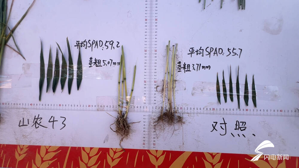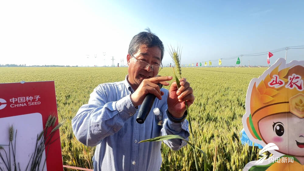 “刚才咱邀请了专家对山农43号的高产攻关田进行了理论测产验收,折合理论亩产816.1公斤。今年这样特别高兴,这2000来亩地马上就获得丰收了。”