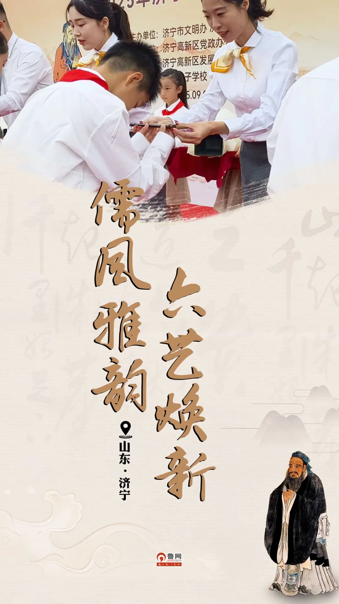 济宁是孔孟之乡,礼仪之邦,儒家文化深厚,孔子学说是中华优秀传统文化的重要组成部分。近年来,济宁市扎实推进创新文化教育,结合东方圣地文化,深入挖掘儒家精髓和六艺的古典内核,积极倡导新时代学生的修身之道,注重开展形式多样的新颖活动,让学生学习与实践中进步,营造的“儒风雅韵,六艺焕新”良好活动,哺育了一批又一批学子,也充分彰显了济宁市将传统文化融入当代教育、艺术及社会实践中创造性转化的新成果和新业绩。