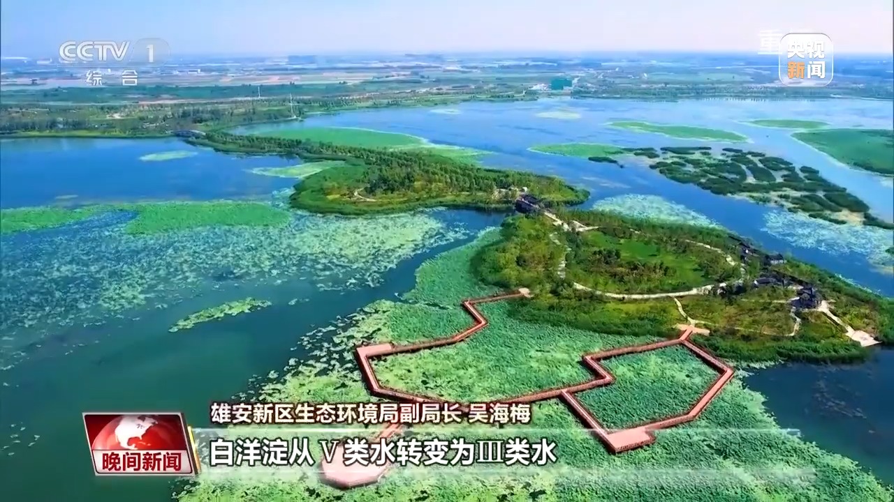 雄安新区生态环境局副局长 吴海梅:白洋淀从Ⅴ类水转变为Ⅲ类水,就像我们人的身体一样,从亚健康状态正在向健康状态转变。看现在的荷花、芦苇这么茂密,以前我们除了采水样,都想不到在这里看风景。