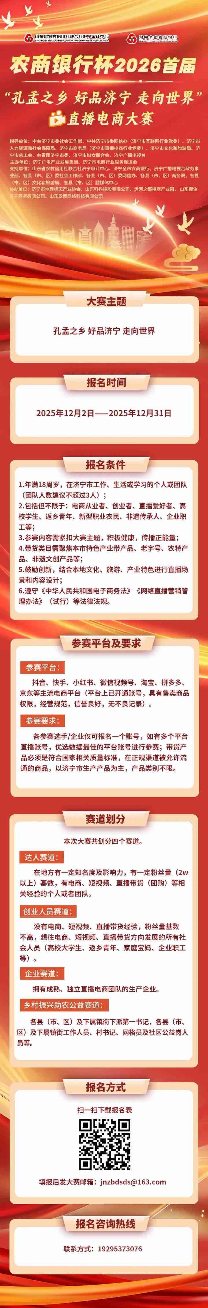 等你参加!农商银行杯2026首届“孔孟之乡 好品济宁 走向世界”直播电商大赛启动报名→