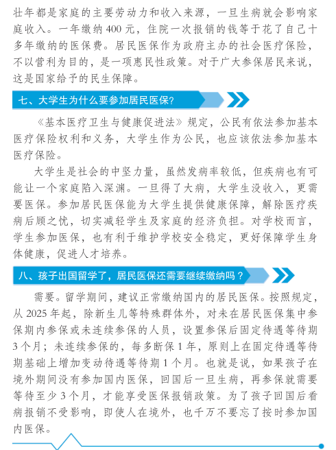 八、孩子出国留学了,居民医保还需要继续缴纳吗?